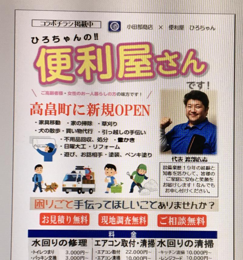はい!小田部商店です!今日は自社PRはおやすみ!便利屋さんのご紹介!