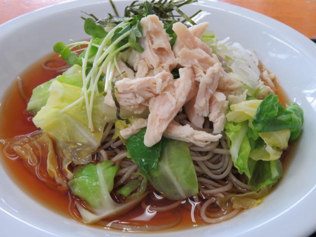蒸した鶏肉と一緒に、さっぱりとお召し上がり頂ける冷たいお蕎麦です。