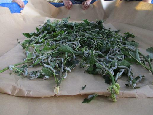 わあ、かわいい!みてみて!うわ〜!ワクワクの声が聞こえてきました!このブログを書いている間に、子どもたちが下校してしまったので、地域の先生方が桑かけに来てくださいました。午前中に届いた時より、大きくなった蚕たち。むしゃむしゃさわさわと、食べ始めています。明日の朝が楽しみです。