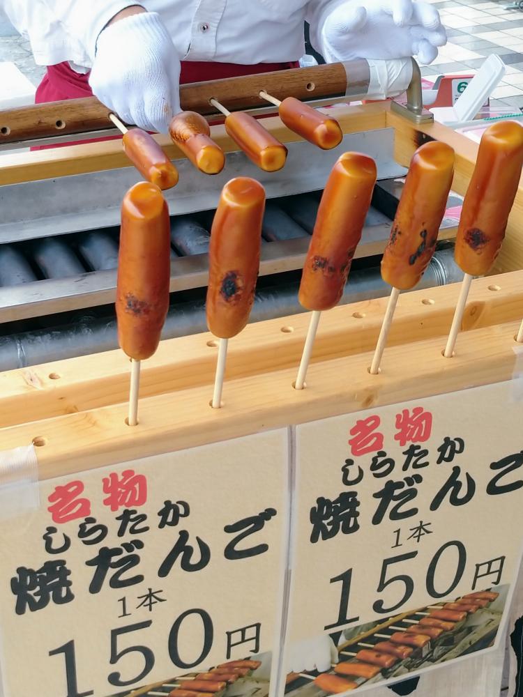 丸くないお団子 「しらたか団子」しらたか団子はおこめをついて、それを絞り出すようにつくっているため棒状の形をしています。 国産丸大豆使用の醤油、粗糖を合わせて、コトコト煮詰めたみたらしを塗ってから、丁寧に焼き上げます。お米のやさしい甘さと、程よいおこげの香りがたまらない一品。 名物しらたか焼きだんご 6月19日(土) 20日(日) やまのべショッピングプラザベル 一本一本丁寧に焼いて販売しております。皆様のお越しをお待ちしておりま〜す。