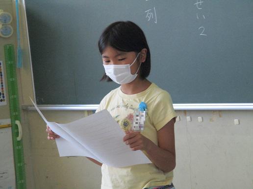 午後に突然の土砂降り、子どもたちが帰ってからでよかった!と、ほっとしています。さて、今日は給食にカレーと塩たまごが出ました。どの教室でも「カレー好きっ!」「たまごだ〜!」と、食べる気まんまんの日でした。4年生の教室では、メニュー発表をしていました。 2年生教室では、先生の問いかけに「はいっ!」の挙手。撮らなくちゃ!と何回もカメラを向けましたが、タイミングが合わす…答えたくてたまらない2年生でした。 5年生は、庄内平野の米作りが盛んなのはどうしてか…という内容で、降水量の勉強でした。真剣な顔たちです。 24日に向けて、泳ぐ距離を伸ばそうと頑張る3・4年生。こちらまで一緒に息継ぎをしてしまいそうでした。ファイトっ! 1年生、夏休みの力作。思わずハッとしてしまいました! 係活動も、きっちり決めます。 蚕桑小の書道の達人たち。 いつもいつも手前味噌ですが、こぐわっ子たち、がんばっています!明日明後日、またほっと一息。どうぞ、コロナに感染しないようお気を付けください。