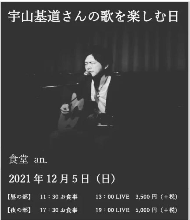 そこで、宇山基道さんをお呼びしまして、食事&ライブを開催することとなりました。