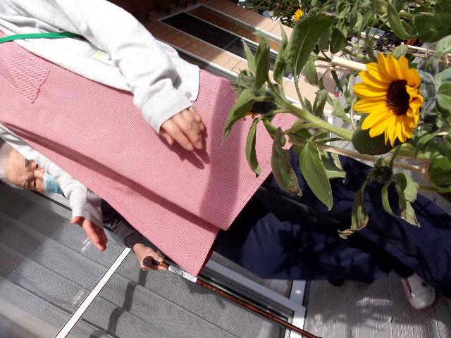 利用者の方が種蒔きから、大事にそだててきたひまわりがやっと咲きました。寒さの中きれいな花が咲くと心がポカポカしてきますね。
