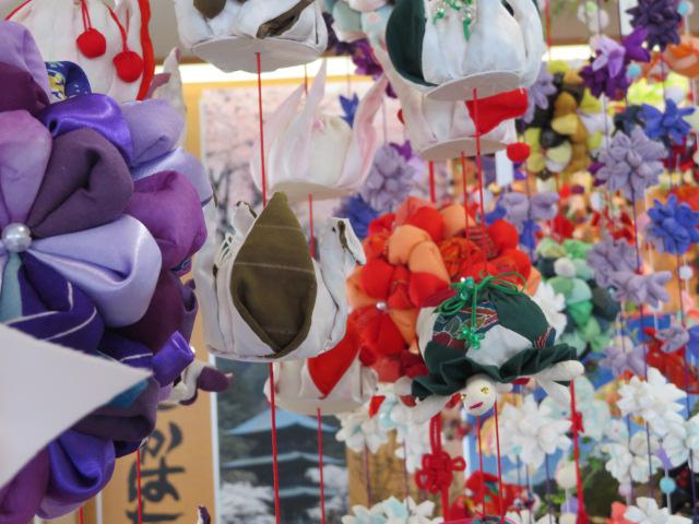 「つるし飾り」とは、縮緬などの着物の布を解いて作った細工物を紐で繋げて、