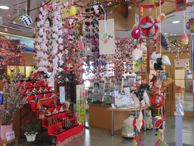 現在、館内展示は、ふれあい工房製作『つるし飾り&手作り手芸品展』を