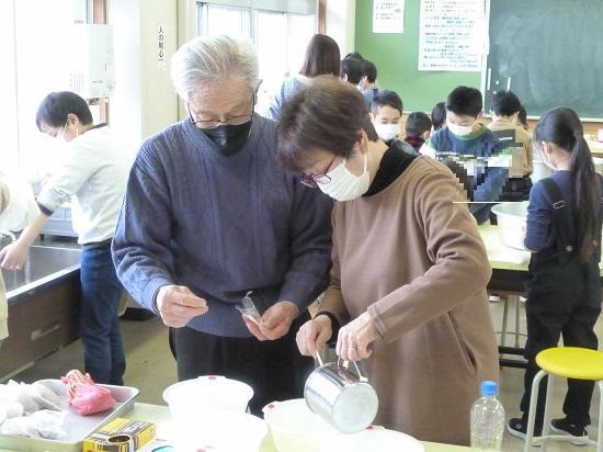 28日(月)4年生の紅花学習の集大成である「紅花染め」学習会が行われました。当日も、1年間紅花学習の講師を務めてくださいました新野先生ご夫妻にご来校いただき、丁寧に教えてもらいながら活動しました。最初に自分の布を水に浸したあと、染料を抽出します。班ごとに紅餅が入った布袋を握りながら、黄色の染料をボウルに集めます。水がとても冷たい様子でしたが、みんな楽しそうに、一生懸命に作業していました。続いて、模様づくりを行います。新野先生がお手本を示してくださいました。使う道具は、ペットボトルキャップと割りばし、輪ゴムです。色を付けて、布を開いてみないとわかりませんが、自分で工夫しながら、完成図を想像し、熱心に取り組んでいました。悩んだ時には、新野先生の出番!わからないことを素直に聞ける力って大事な力ですよね!新野先生も優しく教えてくださりありがとうございます。模様づくりが終わった人から、先ほど抽出した液にしっかりと浸します。当然ながら白い布は、黄色に変色しました。浸す作業を友達と代わるがわる3回ずつ繰り返します。どんな模様になるのかワクワクしながら作業を行っていました。3回ずつ浸し終わると、新野先生が何やら魔法の液を注いでくださいました。なんと!!先ほどまで黄色だった布がピンクに変わっているではありませんか!!きれいな色に染まっていく自分の布に大興奮の子供たちでした!水洗いをして薬を落とせば、はい!完成!!模様の形や大きさなど、同じものは一つとしてありません。世界にたった一枚だけのハンカチです。残念ながら時間の都合上、全員分を写真に収めることはできませんでした。何人かの作品をご覧ください。この一年間、白鷹町の花である「紅花」を追求し続けてきたことはとても貴重な学習になったと思います。この体験をもとに、町の宝物である紅花をもっと多くの人たちに伝えていってほしいなあと思いました。このハンカチはいつまでも大切にしてくださいね!この学習の終盤、一人黙々とチョボラしている人を発見しました。机の下に落ちている糸くずを拾ってくれていました。誰かの役に立つことを自ら実践できる態度が身についていることが素晴らしいと思いました!ありがとう!!