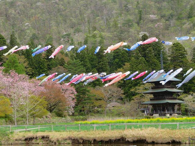 三重塔前に、たくさんの"こいのぼり"が泳ぎ始めましたヨ☆