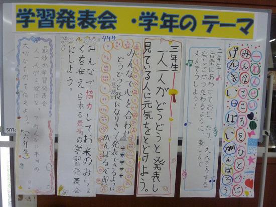 10月29日、これまでの学びの成果を披露する学習発表会が行われました。開会行事では、2年生の代表児童が、堂々と、見どころや決意を述べました。全校合唱では、今年度、大事にしている「いのちの歌」をきれいなハーモニーで歌いました。体育館中に響いていました。いよいよ学年発表。トップバッターは、5年生。これまで勉強してきた米作りをテーマに発表しました。米作りの順序や農家の人の工夫や努力、そして今抱えている課題など、調べてきたことを伝えることができました。そして最後には、お師匠さんから学んだ畔藤田植え踊りの発表。これまで先人が守り続けてきた伝統芸能をしっかりと受け継ぎました。続いて、4年生の発表。地球のトレジャーを奪おうとする宇宙人と、本物のトレジャーに気づき、守ろうとする地球人を表現しました。鬼たちと戦うシーンも迫真の演技で、ぐーっと引き込まれました。正義の味方「紅花戦隊チェレンジャーズ」登場!かっこいい!!紅花、最上川、宝山・・・身近にある本物のトレジャーをこれからも守っていきます!続いての発表は1年生。1年生になり、勉強を通して新しく知ったことや驚いたことがたくさん!毎朝忘れずに水かけをしたアサガオの観察からもびっくりがいっぱい!育ててきたサツマイモのつるの長さや収穫したサツマイモの数や量にびっくり!「おおきなサツマイモ」の劇は、国語の勉強が十分に頭の中に入っていることがわかりました。アサガオ博士、サツマイモ博士、長い詩の暗唱にびっくり!!元気をもらいました。続いて2年生の発表。ハンドベルで奏でる「ドレミファソラシド」はとても素敵でした。イルカはザンブラコ・・・バンブーダンスも頑張りました。一人一つの楽器を担当して披露した合奏も見事でしたよ!そしてなんといっても最大の盛り上がりは、最後のダンス!!音楽に合わせて、キレッキレの踊りに思わず大きな手拍子!でした。続いては、3年生の発表。「本当の宝物はなにか」、見ている人はきっと自問自答しながら3年生の劇をご覧になられたことでしょう。様々な宝物が出てきましたが、このコンクールで合格したものは、「学ぶ心」「音楽」「地域」そして「子供たち」。毎日の学校生活や勉強、仲間、そして地域が本物の宝物なんですね。身近にある本当の宝物を大切にしながら、力を合わせて頑張っていこうとする思いが伝わってきました。これからも地域の皆様に笑顔と元気をお届けします!トリを務めるのはもちろん6年生。「めんどくさーい!」ことを何でも解決してくれる何でも引受株式会社。こんな会社あれば、きっと楽でしょうね。しかし・・・苦手なことや大変なことから逃げてばかりいると、最後は自分に返ってくるんですね。嫌なことを誰かに任せきりにしないで、自分で努力することが大切です。6年生からのメッセージをしっかりと心に刻み、「がってしね子供」を目指していきましょう!身振り、手振りをつけて閉会のあいさつをする6年代表児童。1〜6年生まで、「やり切った!」「頑張った!」という自信を身につけた東根っ子たち。頼もしい109人です!!