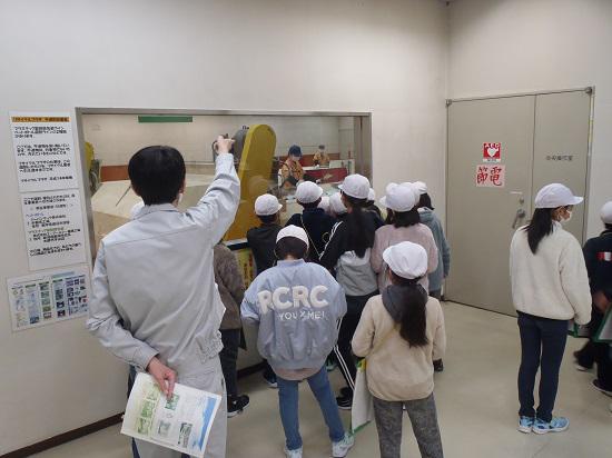 11月2日(水)、4年生が高畠町の千代田クリーンセンター見学に行ってきました。教室での事前学習を終え、自分の家から出されたごみが清掃工場に運ばれ、どのように処理されているか学習しました。まずはセンターの方から1年間でどれくらいのごみが出るのかをお聞きしました。白鷹町だけで、昨年度は合計で2858トンのごみが出されたことを聞き、びっくり!!続いて、施設内見学です。窓をのぞくと、家庭用ごみを運ぶ車が次々と来るのが見えました。その多さにもびっくり!トラックスケールといって、車ごとはかりに乗って、重さを計測できるのだそうです。また、高い煙突も見えました。高さは59m。焼却されて発生したガスをきれいにしてから大気中へ出されることをお聞きしました。蒸気タービン発電機も見せてもらいました。ごみを燃やした熱で電気をつくっていることやその電気が、クリーンセンターや「湯るっと」などに使われていることも知りました。中央制御室にはたくさんのモニターがありました。中には係の人がいて、安全に燃えているか、機械がちゃんと動いているか、きれいな排気ガスを出しているかなど、監視しているのだそうです。ここは炉室です。ここには1日のごみを85トン燃やせるものが3つもあることに驚いていました。ちなみに温度は、850度から950度とのこと。ここはプラットホーム。燃やすごみを投入する場所です。自己搬入車用とごみ収集車用とに分けられていました。ここは、リサイクルプラザです。プラスチック用とペットボトル用に分けられていて、不適物を取り除くところです。ここで仕分けされた物はリサイクル業者へ引き渡されます。なんと手で仕分けしていることを知り、またまたびっくり!!ここはごみピット。大きな機械で多量のごみがつかまれ、焼却炉へ送られます。最大つかみ量は1.8トン。想像もつきません。ここは様々なものが展示されていました。ペットボトルで再生されたワイシャツなどもありました。捨てればごみ、分ければ資源の大切さを改めて学びました。見学したことをもとに、この後どのような学習になっていくのか、楽しみです。