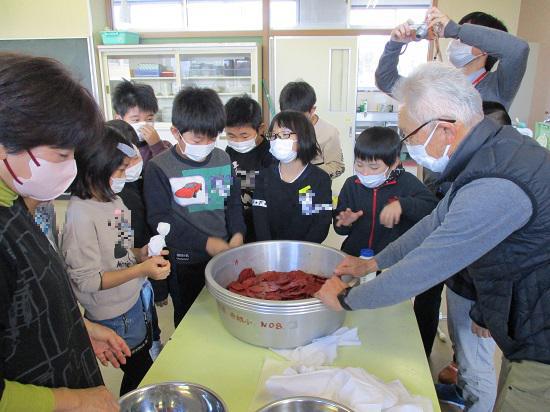 2学期も地域の先生方に大変お世話になりました。11月16日には、新野先生ご夫妻においでいただき、紅花染めを教えてくださいました。手も黄色に染まるくらい、一生懸命活動していました。今回使用した紅餅には、自分たちが栽培して花摘みをした紅花も入っているとのこと。一つ一つの工程をお聞きしながら真剣に取り組みました。 模様は十人十色。その子の個性が出ていました。そして完成!世界に一つしかない紅花染めハンカチをうれしそうに見せあっていました。新野先生、一年間大変お世話になりました。そしてその翌日は、3年生の岡の台ごんぼ堀りがありました。今年は残念ながら雨により、ごんぼの生育が思うようにいかず、収穫できない危機に見舞われました。しかし、小松先生と同じごんぼ農家の田中様より畑をお借りし、収穫そしてその収穫物をいただくこともできました。心から感謝申し上げます。おかげさまで貴重な体験をすることができました。小松先生、そして田中様、本当にありがとうございました。今度はいただいたごんぼを料理し、お世話になった先生方に食べていただく計画があるようです。レシピも家に持ち帰ると思いますので、どうか各ご家庭で試してみてください。11月21日には、5年生が田んぼの学習を行いました。村上先生より、代掻きの大切さを勉強しました。説明だけではわかりにくいところを、実験を通して教えていただいたので、とてもよく理解することができました。米作りの奥深さを実感した子供達でした。そして、11月29日には、6年生の木工教室が行われました。昨年度から町産材を活用したものづくり教室をしていただいています。今年の6年生が挑戦したのは、踏み台です。地域の先生や学校の先生にも手伝っていただきながら、自分だけの踏み台が完成しました。ぜひおうちで活用してください。宝物ですね!!