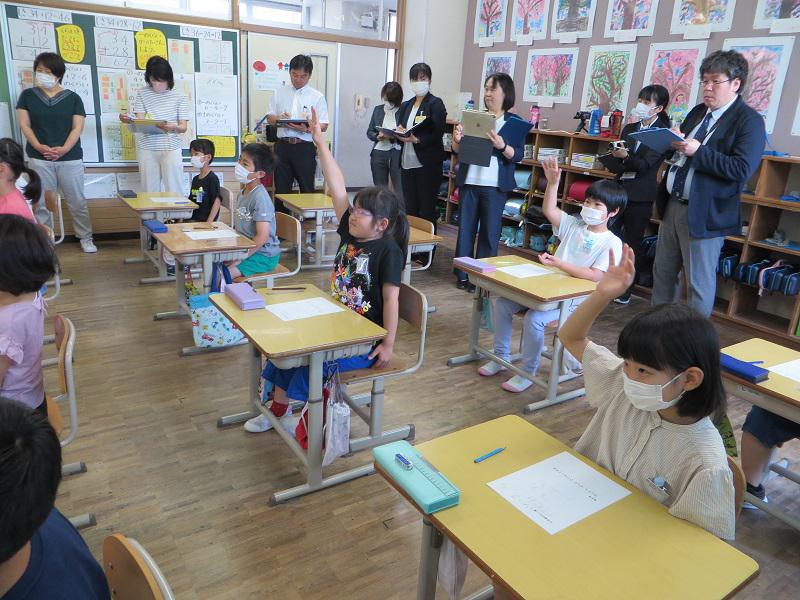 6月7日(水)、今年度第1回目の授業研究会を行いました。宮城教育大学、置賜教育事務所、白鷹町教育委員会からも先生方にご来校いただき、2年生と6年生の算数の授業を見ていただきました。2年生の様子です。繰り下がりのある筆算の仕方について考えました。初めは、自力解決をする「ひとり学び」の時間です。思い思いの方法で、試行錯誤を繰り返しながら答えを導き出します。次に、お互いの解き方を交流しながら自分の考えを深める「とも学び」の時間です。同じような方法で解いた者同士集まって説明し合います。後段の全体交流では、一の位がひけない場合でも10の束を1つばらして一の位に置くことで計算が可能であることを確認しました。 6年生です。データの特徴を分析し、多面的に考察する授業です。一人一人がなわとびチームの監督になったつもりで、勝てるチームを選出するために数値の分析を行います。平均値、最大値と最小値、最頻値、散らばり 等、前時まで学習した内容を駆使しながら、一生懸命分析を進めていました。こちらも2年生同様、「ひとり学び」「とも学び」を行いながら考えを深め、全体交流では、担任の先生からの新たな情報を踏まえ、より深い考察を行っていました。目的や条件によって選び方が変わってくることにも気付くことができました。どちらの学年も、真剣に学習に取り組む姿や これまでの学習内容を思い出しながら一生懸命考え抜く姿をたくさん褒めていただきました。 (^_^)今年度は、例年よりも様々な先生方に授業を見ていただく機会が多くあります。学校としてもよりよい授業づくりのため、参観いただいた先生方からのご意見を真摯に受け止め、子供たちに少しでも力をつけられるよう努めてまいります。