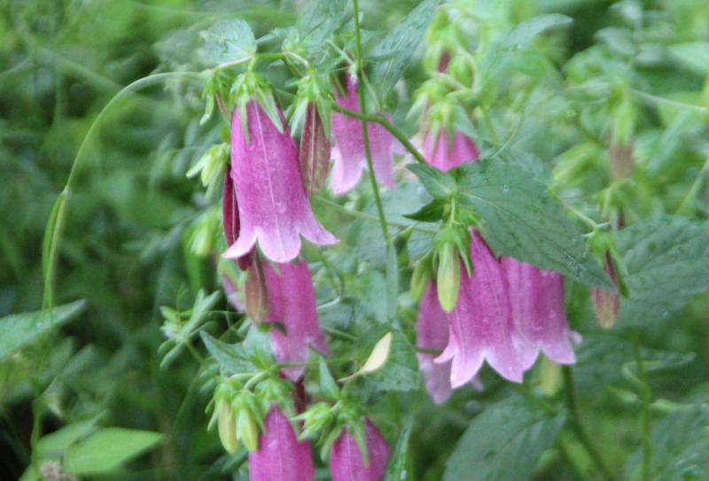 ●野草の観察会の研修会を予定しており 事前下見として烏帽子山公園を散策してきました 釣鐘のような紫色の花が雨に濡れて咲いていました 平地から山地に広く分布する多年草だそうです 雨の日には草花が色鮮やかです 小雨の時などは絶好の観察びよりでしょうか
