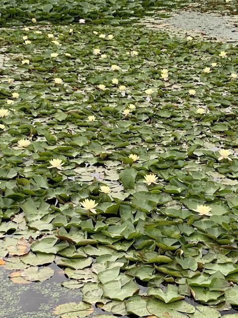 二色根古堤の睡蓮が咲いています。今年はカモがいませんね〜睡蓮、の下には蓮根があるのでしょうか…。あるよね〜。