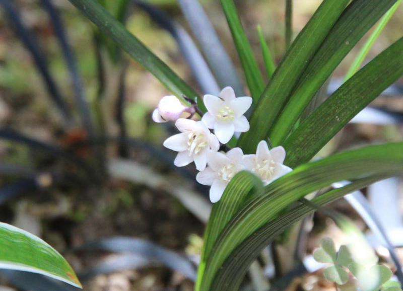 ●黒っぽい葉をもつ草花が白い花をつけています「コクリュウ」という草花で黒い葉は珍しく緑色が主なる庭づくりでは大きな役割を果たしているそうですが我が家の「コクリュウ」雑然と植えられているだけです 寒さにも暑さにも乾燥にも強く植えっぱなしでもどんどん増えていくそうです 花は下向きに咲いており無理して上向きにしましたが写真を撮るのに苦労しました