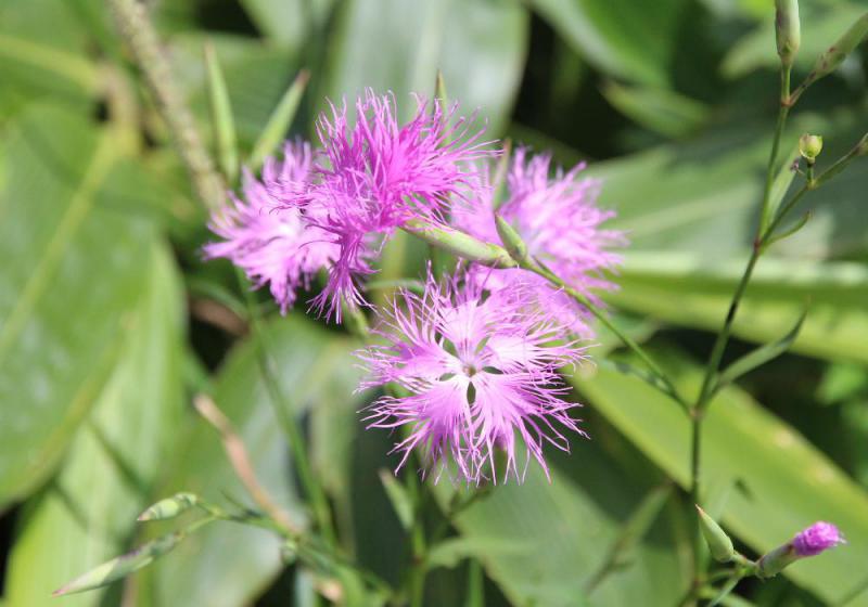 ●鳩峰峠の山頂でピンクの花を咲かせている花がたくさん咲いていました「エゾカワラナデシコ」でしょうか 山地の日当たりのよいところに自生しているといいます とても可愛いはなで夏の山を彩ってくれる花ですが株の寿命が短いので庭で育てるのは大変だといわれているようです