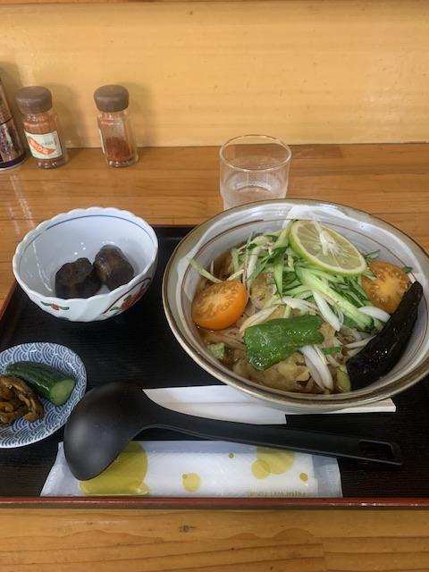 糸柳(0238-43-2426)の夏野菜たっぷり冷やしたぬきうどん。(←品名、いま考えた)