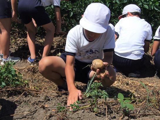 8月24日(木)、今日も朝から気温が上昇↑外で活動できる時間も限られてきました。 (>д<)間もなく運動会期間に突入しますが、果たしてこの暑さはいつ和らぐのでしょう…。 さて、今日は6年生と4年生の様子を紹介します。 <6年 ジャガイモの収穫>大量のジャガイモを収穫することができました。この後、このジャガイモはどうするのかな? <4年 収穫したスイカでスイカ割り>まずは、みんなでスイカ割りを楽しみ…その後はおいしくいただきました! 連日の暑さで畑の作物もちょっと元気がないようです。「晴天」はうれしいですが、適度な雨が恋しいですね。