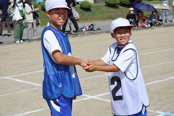 お互い頑張っぺ!の握手でしょうか!いい顔だ! フレ〜 もう少しだ! 頑張って走って来いよ〜! 最後まで! 結果は…! うれしいよね〜! おめでとう! ばんざ〜い! よくやった! なんてすがすがしい顔! 赤組も、本当に精一杯やったよ!うれしい気持ち、悔しい気持ち、君たちにはまだ時間がある!来年も期待しています!