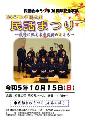 夕鶴の里では10月15日(日)に民話会ゆうづる30周年記念事業第22回 夕鶴の里「民話まつり」を開催します。