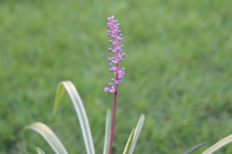 ●毎年紹介しているおなじみの花で細長い葉には白い縁取りがあり少々水をやらなくとも育つ「ヤブラン」の花が咲きそうです 耐寒性耐暑性はもちろん病害虫にも強く土もあまり選ばない植物です 秋には長い穂を伸ばし薄紫色の蕾から白い小さな花を咲かせます 昔から緑化や造園の植栽に 花壇の縁取りなどに植えられているようです