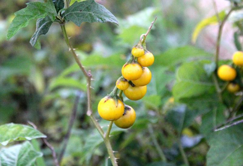 ●刈り取りの終わった田んぼのそばの道路で以前紹介した「ワルナスビの黄色い実」を見つけました 鮮やかな黄色でトマトに似ておいしそうですが 有毒であり家畜が食べると場合によっては中毒死することもあるそうです 和名の「ワルナスビ」もこのようにたちの悪い生態からつけられたそうです 英語でも「Apple of Sodom(ソドムのリンゴ)」「悪魔のトマト」など悪名であると書いてありました