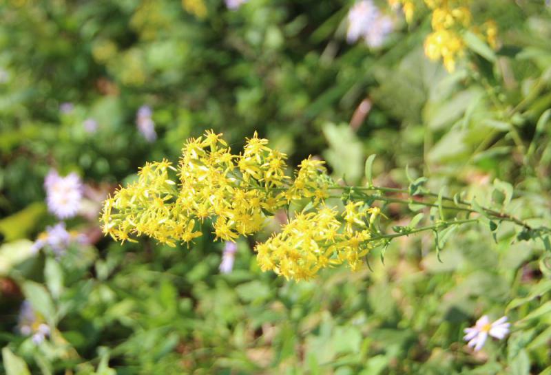 ●昨日 とある小高い丘に咲いている黄色の小さな花を「アキノキリンソウ」と教えていただきました 夏に咲くキリンソウに似て秋が深まる今頃に咲くので「アキノキリンソウ」と名付けられたそうです 花の群れ咲く様子を酒造りの際に生じる泡に見立てた泡立草(アワダチソウ)という別名もあるそうです雑草の王者であるセイタカアワダチソウは別名をセイタカキリンソウというそうです この「アキノキリンソウ」はセイタカアワダチソウほど大きくならず繁殖力も低いので繁茂しないそうです