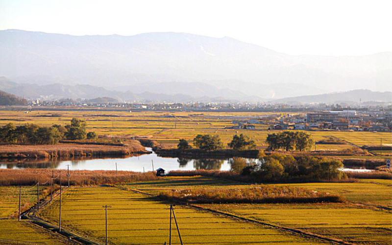 ●昨日一昨日と最後の秋晴れでしょうか気持ちよい天候となりました 夕方鳥上坂を車で下って赤湯に戻ってきた時眼下に広がる白竜湖周辺の風景がまさに晩秋を思わせる風景に出会いブドウ園の上から写真を撮りました これが晩秋の風景だと何枚も撮った一枚です 今日は朝から霧がかかり曇っているようです 明日から雪が降るのではとの予報もあり秋の風景の見納めでしょうか