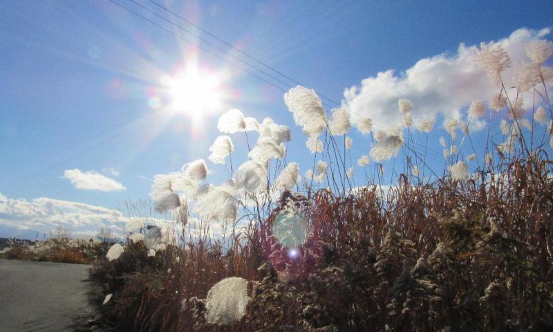 ●12月に入って今日は5日です いつ雪が積もってもおかしくない季節になりましたが昨日に続いて今日も晴れそうです 雪が積もらないせいか道路沿いのススキもまだ穂を落とさず太陽の光を受けて白く輝いています でも吹雪でもおかしくないのですが太陽の恵みに感謝しています