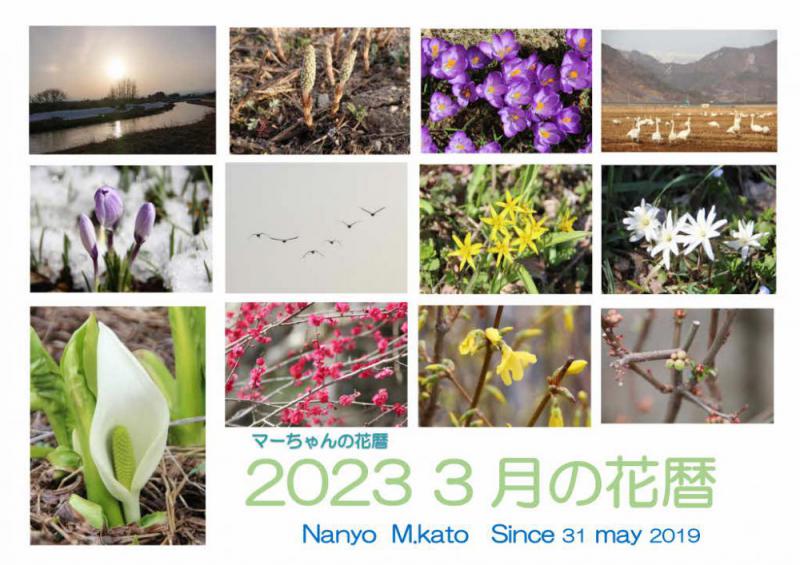 ●3月に入ると徐々に暖かくなり 草花の花が次々と開花してきました「3月の花暦」は残雪や雪解けが進み全体に彩も豊かになってきます 雪解けの水かさが増し白鳥が北へ帰る準備を始め隊列を組んで独特の鳴き声を響かせて飛んでいく姿を目にするようになりました