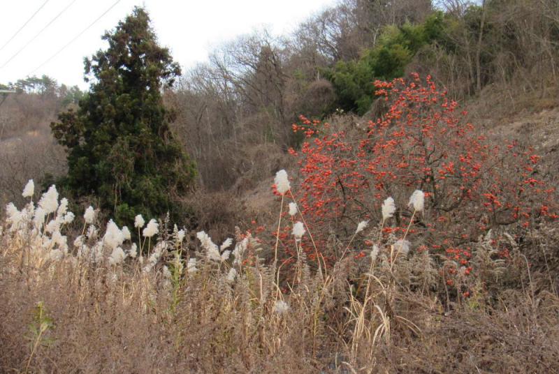 ●ついに本格的に雪が降りいよいよ冬がやってきました 雪が降る前にと昨日初冬の風景を撮りたいと近くの山際を散歩しました まだ残っていた真っ赤に熟れたカキと真っ白なススキがコラボした初冬の風景を撮りました そばに葉を落とさない杉の木もありなんとなく冬なんだと実感してしまいました いよいよ本格的な冬でしょうか