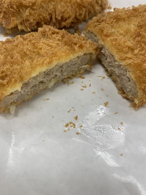 「メンチカツ、メンチカツ」辰巳屋牛肉店(0238-43-2029)のメンチカツです。メンチカツの話題になり、どうしても食べたくなりました。BEKOちゃんが買って来てくれました。ソースも醤油もかけずにパクッです。