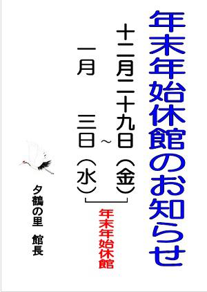 12月29日(金)〜1月3日(水)まで休館させていただきます。