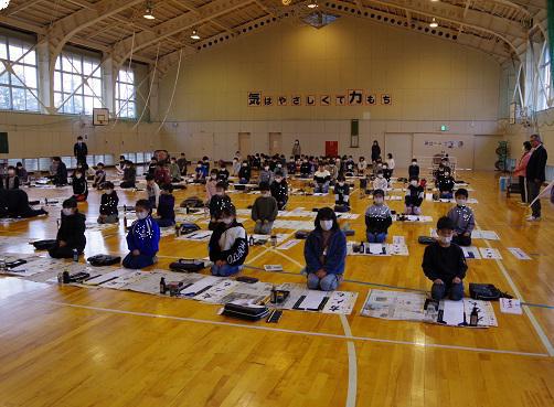 昨日は書初め。こぐわっ子たちの正座する姿に、自分の心も整いました。心を込めて書初めをするということは、「心を整えて前を向く」こと、自分の行く道を考えながら、書きましょうという話をしました。 こぐわっ子たちの心と目はまっすぐでした。 ちょっと難しい話を、1・2年生もしっかり聞いています。 始業式で話したことを、一足お先に「書初め」として書きました。こぐわっ子たちへの願いです。 「春の海」さくらさくら」などの琴の音を想像しながら写真をご覧ください。 ここからは、1・2年生の硬筆。とても丁寧に、集中して書いています。 2年生は、今、グループ活動に力を入れ、より「友達の存在」を感じながら生活しているので、このような形で書きました。 「うまくできた!」の笑顔。いいね! 「ふ〜、どれを提出するかな〜。」 日本の伝統文化を継承すること、居住まいと心を正して物ごとをなすこと、今の時代だからこそ、必要なのかもしれません。 よいひと時でした。