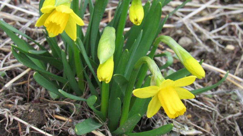 ●暖かくなったり寒くなったりと落ち着かない天候に草花もいつ開花したらいいのか戸惑っているようです 散歩のたびに開花している「スイセン」を探していますがなかなか見つかりませんでしたが昨日の散歩中にようやく咲いている「ミニスイセン」を目にすることができました 暖かさに誘われて次々と開花するような蕾をたくさん見ることができ開花が楽しみです