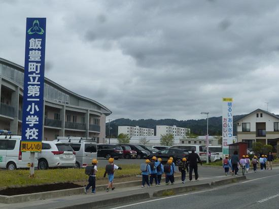 4月23日、安全な歩行の仕方を学ぶ1,2年生の交通教室が行われました。当日は、急なお願いにもかかわらず、11名の保護者やお家の皆様、そして3名の地域の方々にご協力いただきました。本当にありがとうございました。まず最初に、飯豊町交通安全指導員の舟山様から、基本の歩き方や約束事についてお話をお聞きしました。特に、「右側を歩くこと、一列になって歩くこと、大きな声で声出し確認することを頑張りましょう。」と教えていただきました。お話の後、早速班に分かれて実際の道路を歩きました。大勢の友達と一緒に歩いたので、中にはピクニック気分になっていた一っ子もいたようだとご指導いただきましたが、多くの子ども達が、しっかり止まって、はっきり確認しながら歩くことができました。今日の訓練で安全な歩行の仕方を身につけたとは言い切れないところがありますので、機会をとらえて、子ども達と一緒に歩いていただければと思います。ご協力よろしくお願いします。【ご協力いただいた地域の方々と保護者の皆様】【膝カメラでお話をお聞きしました】【指さし練習】【いざ、出発!!】【一人でできるようになりました!】