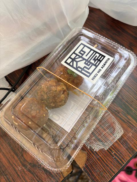 肉の旭屋(0238-43-2639)の肉だんご。本当の団子になっている肉団子 (゜-゜)(゜_゜) 三色じゃないけど三つの味の肉だんごの団子 (゜_゜)(゜_゜)…で、いいですよね? 休憩中のお猿さん。毛がふさふさ〜もふもふ〜。