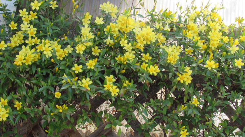 ●ジャスミンとの名前に魅せられて買った「カロライナジャスミン」が今年も漏斗状の黄色の花を咲かせてくれました かすかに香るだけであまり気になりませんが有毒の植物であることを知り驚きました 剪定する時には手袋をかけてやった方がよいとのことで少し怖くなりました 生育が旺盛でどんどんとツルを伸ばすので伸びすぎた部分を切り戻さないと始末に困ってしまうほどです