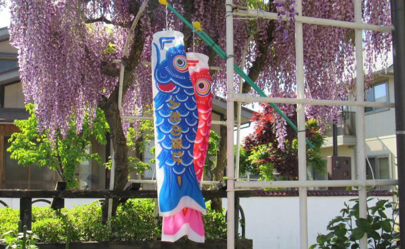 ●満開の「フジ」の花の下に小さなこいのぼりが泳いでいます 高齢者夫婦のだけの我が家に似つかわしくないのですがちっちゃなおもちゃのこいのぼりを今年も飾りました こどもの日は1948年に制定された国民の祝日で端午の節句だった5月5日をすべての子ども達の幸せのために作られた祝日だそうです 今日は夏日の暑さとなりそうですが子ども達にとって幸せな1日であってほしいと願いながらちっちゃなこいのぼりを眺めています