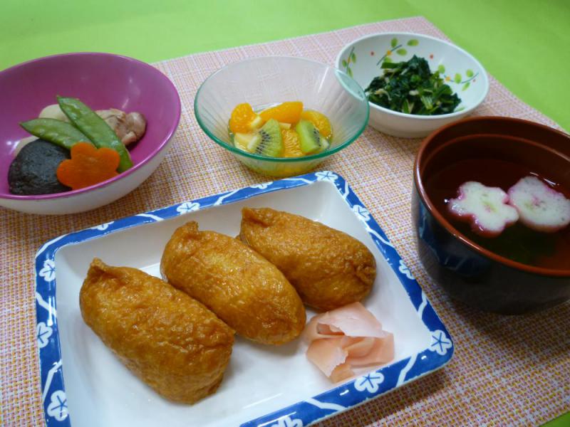 栄養課です。5月のお誕生会は「いなり寿司」を提供いたしました。皆さん、とても楽しみにしてくれて全員完食されていました。「美味しかったよ」や、「もっと食べたかったな」と声を掛けて頂き、やりがいを感じた一日でした。