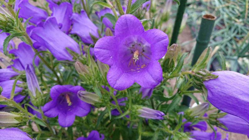 ●紫色の「フウリンソウ」が咲いていました この花はその花の形が風鈴や釣鐘に似ていることから名づけられたそうです カンパニュラと呼ばれることも多く藤色や青色、ピンク色などの花色があります 独特の形と鮮やかな紫色の花が梅雨時を迎えるかのように咲いています