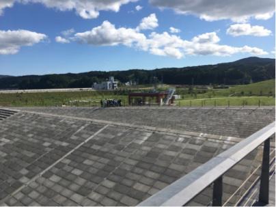 震災の跡地を見学中です。みんな真剣です。祈りの丘まで全員で上ってみました。この後、さらに移動します。