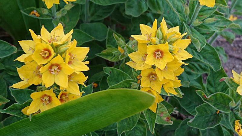 ●茎が立ち上がり星形の黄色の花を咲かせている花を見つけました 調べてみるとあまり聞いたこともない「リシマキア・プンクタータ」という名前がヒットしました まるで絵本にでも出てくるようで星が連なっているような可愛らしい花です 本当の名前は何でしょうか