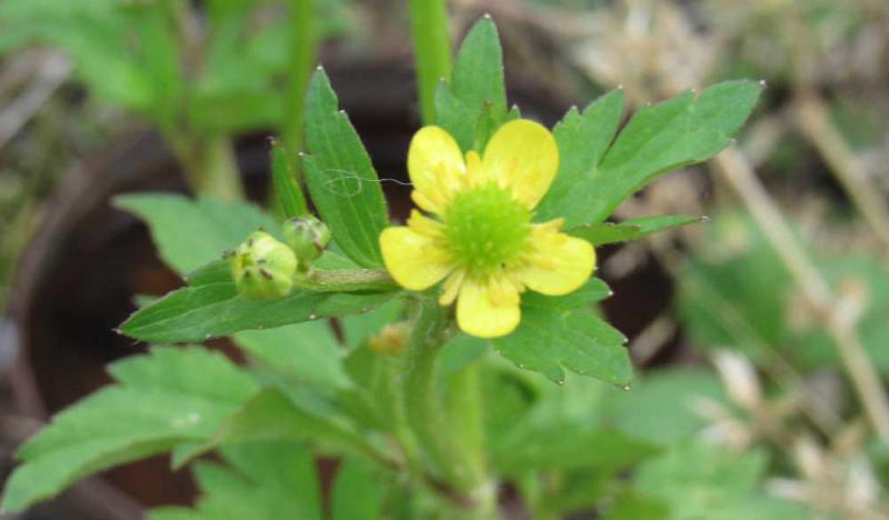 ●湿った道ばたで「キツネノボタン」を見つけました 以前はどこにでも生えていましたがあまり多くを見つけることができなくなりました 葉の形がボタンに似ていてだまされたと「キツネノボタン」と名付けられたとか 確かに葉だけみると似ていますね 「ウマゼリ」とも呼んでいたような気がします 学名の「ラナンキュラス(Ranunculus)」だそうですがラテン語の「rana(蛙)」が語源なんだそうです  かえるがたくさんいるような ところに生えることからきたそうで納得です