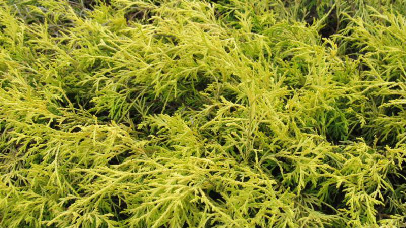 ●散歩道で真黄色の花が咲いたようにヒバの葉が輝いていました「黄金ヒバ」と呼ばれ垣根として植栽されているのを見かけることがあります 正式な名前は「オウゴンクジャクヒバ」というそうです 葉が孔雀のように広がり黄金色でなんとも縁起の良い花木です