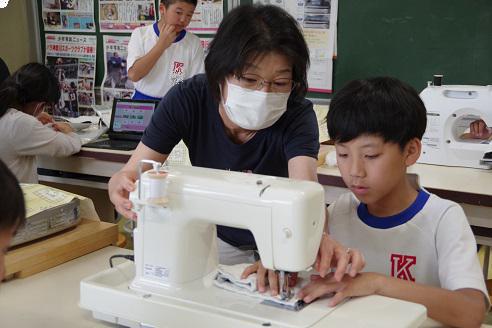 今日は、4名の地域の先生にご来校いただき、修学旅行にもっていくナップザック製作。今日は、ミシンで縫うところをしつけ糸で押さえたり、実際に縫う作業です。 はい集中して〜!余裕なのは、だあれ? お聞きしながら、また自分たちで、どんどん進めます。 二時間かけて、ほぼ全員が出来上がりました。 先生方、ありがとうございました!修学旅行が、また一歩近づきました!