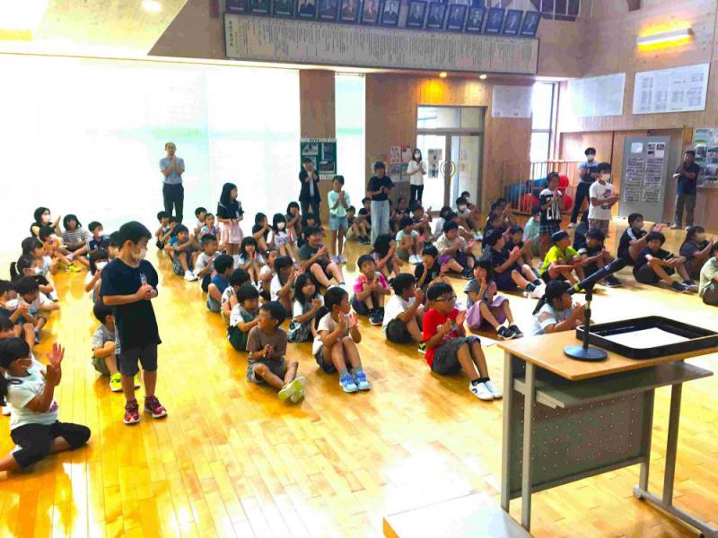 本日で77日間の1学期が終了です。朝の時間に終業式を行いました。読書と650のがんばりの表彰の後、代表児童の作文発表や校歌斉唱を行いました。終業式後の各学級では、学習をしたり夏休みの確認をしたりと、さまざまな様子でした。明日から楽しみな夏休みです。事故やけがなく、楽しい夏休みにしてほしいと思います。
