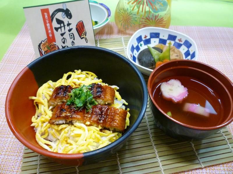 栄養課です。7月24日の土用丑の日に、夏バテ防止と食欲増進を願い、「うなぎ丼」を提供しました。うなぎの栄養素は主にビタミンAやビタミンBが豊富で、疲労回復、免疫力を高める、視力回復に良いとされています。入所者の皆さんも大変喜ばれておりました。