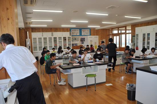 「コップに水を入れておくと、いつの間にか減っている。」「水に濡れていた洗濯物が乾く。」日常生活には、当たり前のようですが、不思議なことがたくさんあります。4年生ではそれらの疑問を解決するために、「自然の中の水のすがた」という学習をしています。コップの水が減ったり、洗濯物が乾いたりすることから、それらの水はどこに行ってしまったのかを調べるために、自分たちで実験方法を考え、取り組んでいます。子供たちは、水は空気中に蒸発したのだろうという予想を立てました。その予想を確かめるために2つの方法が出されました。1つは、コップの口にラップを取り付けます。水が空気中に蒸発するということは、そのラップに水滴がつくという方法です。2つ目は、暗いところで蒸発したであろう部分にライトを当てると、水滴がキラキラと光って見えるのではないかという方法。自分たちで考えた方法で、熱心に勉強する姿がありました。さあ、結果はいかに!ぜひ、子供たちに聞いてみてください。