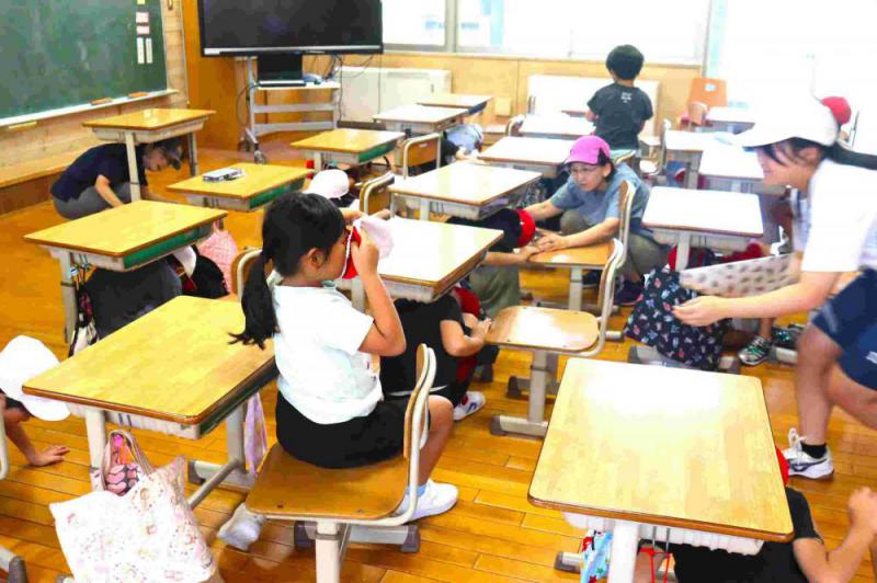 2校時から3校時にかけて、避難訓練と起震車体験を行いました。今回の避難訓練は、地震の想定です。今回も、約束をしっかり守って素早く安全に避難できました。暑いため、避難後の話はホールで行いました。起震車体験は、低・中・高学年に分かれての実施です。県内に1台しかない車で、貴重な体験です。震度はそれぞれ「5弱」「6弱」「7」を体験しました。強い震度は、やはり立っていられないようでした。現在はいろいろな災害が起きてしまいますが、自分の身を守ることは今後も大切にしてほしいです。