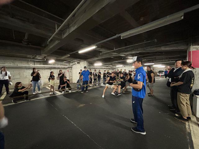 雨のため地下駐車場に移動しての綱引き大会。応援の声が反響して、耳が痛くなるほど。スッゴイ!みんな燃えてる〜(≧∇≦)盛り上がりが凄かったです。